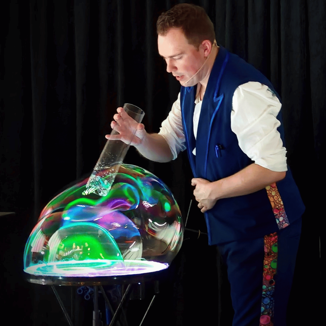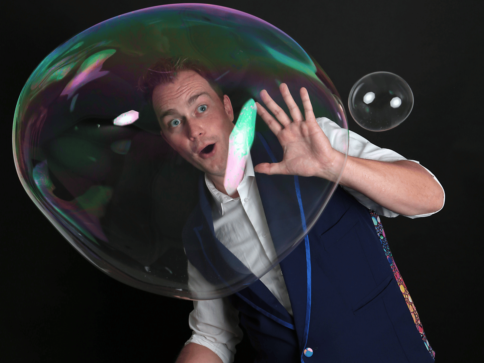 Ervaar de wonderen van reuze zeepbellen, vingervlugheid en luchtige zeepbel creaties.